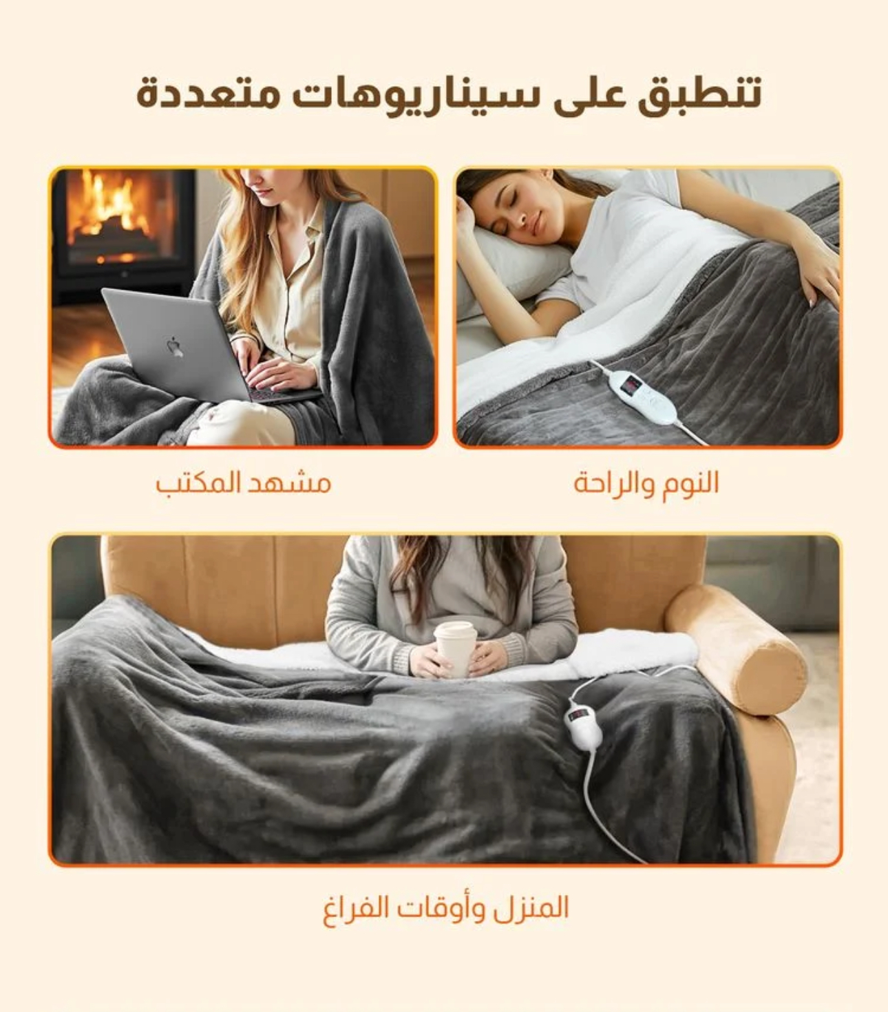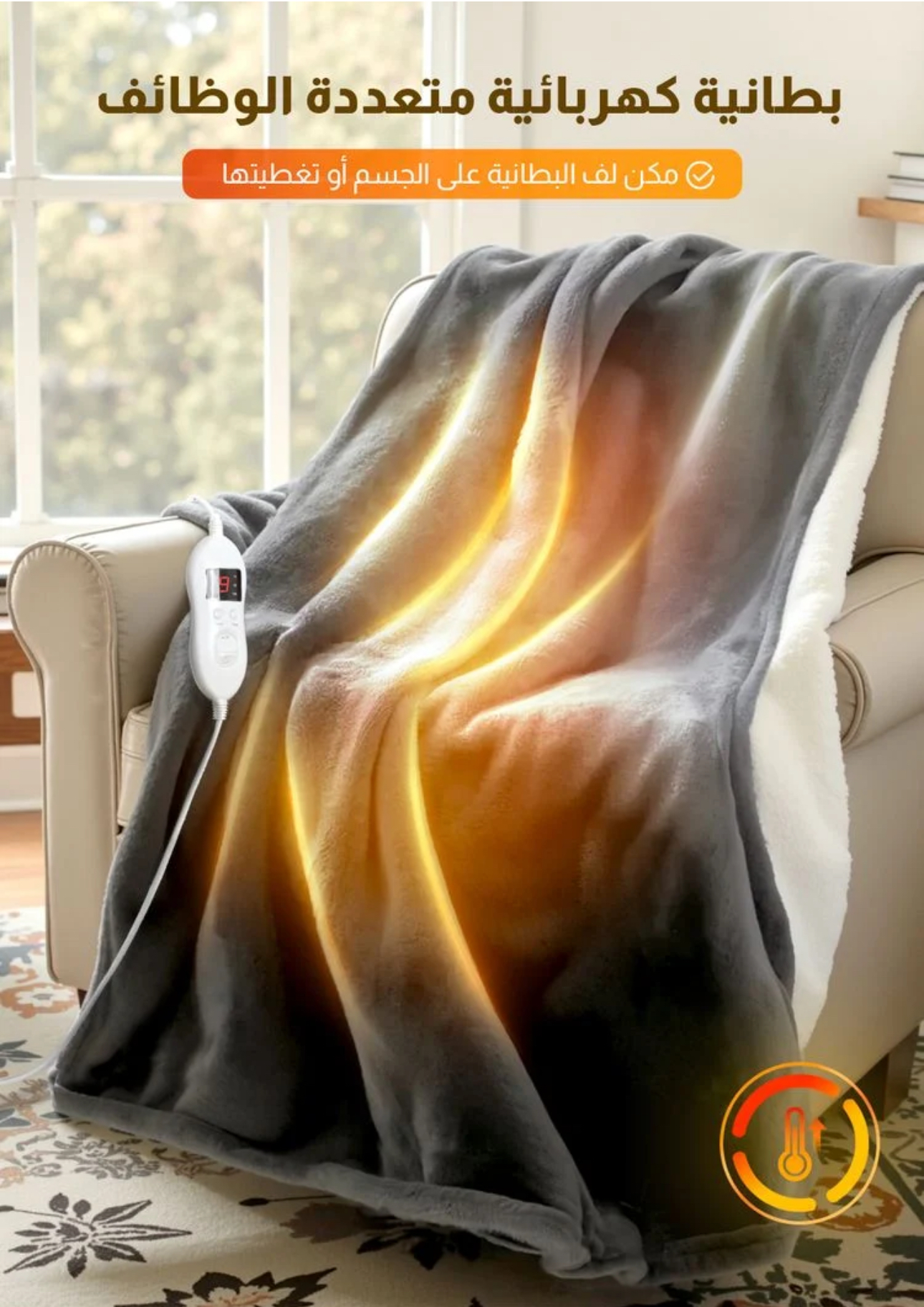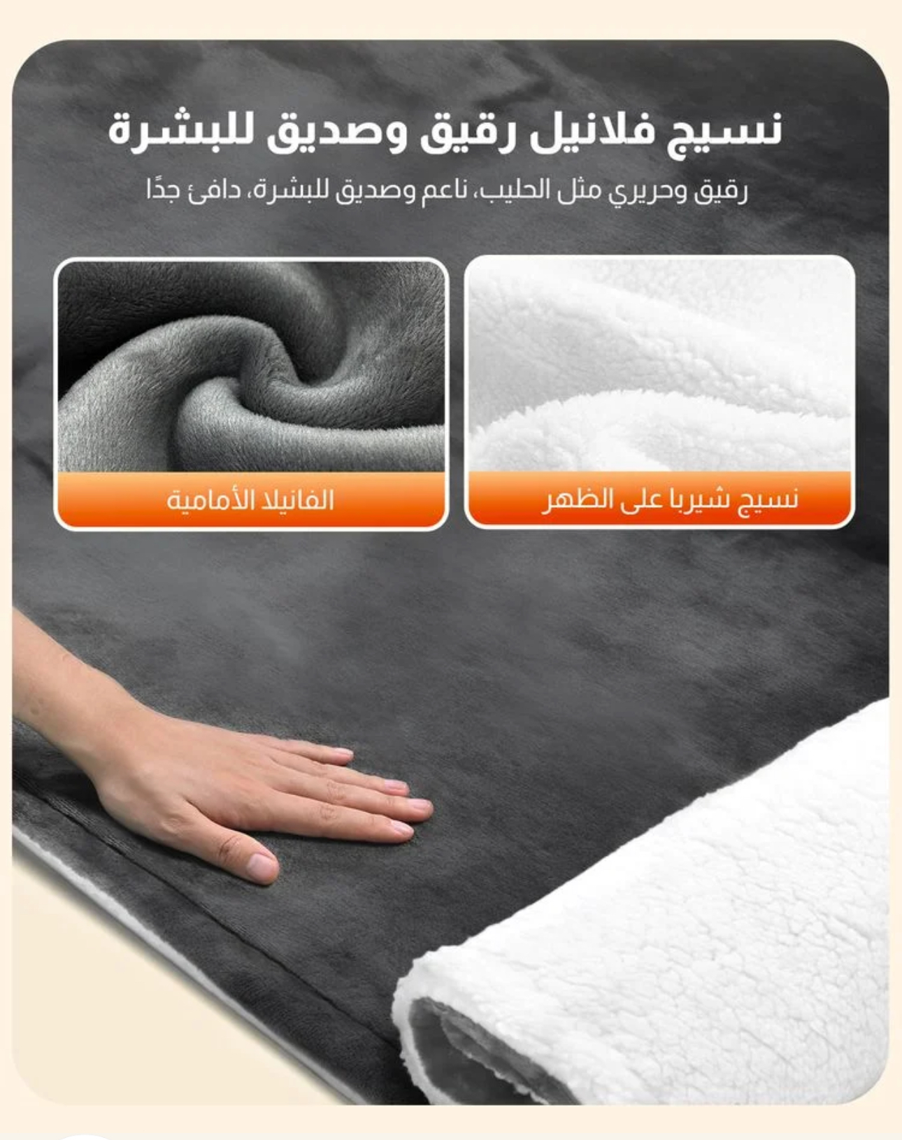بطانية واسعة بحجم 200 × 150 سم تكفي لشخصين، بتدفئة قوية وناعمة تخلّي ليالي الشتاء أكثر راحة وهدوء.